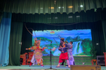 (舞台上,刘备、关羽、张飞三人与吕布展开激战)